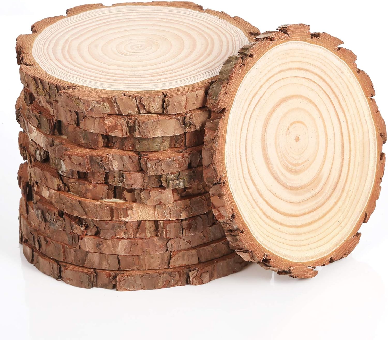 Description pine wood slices is natural that some wood bark may fall partially from the slices.